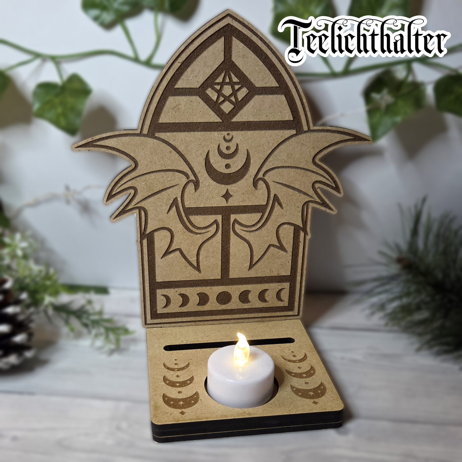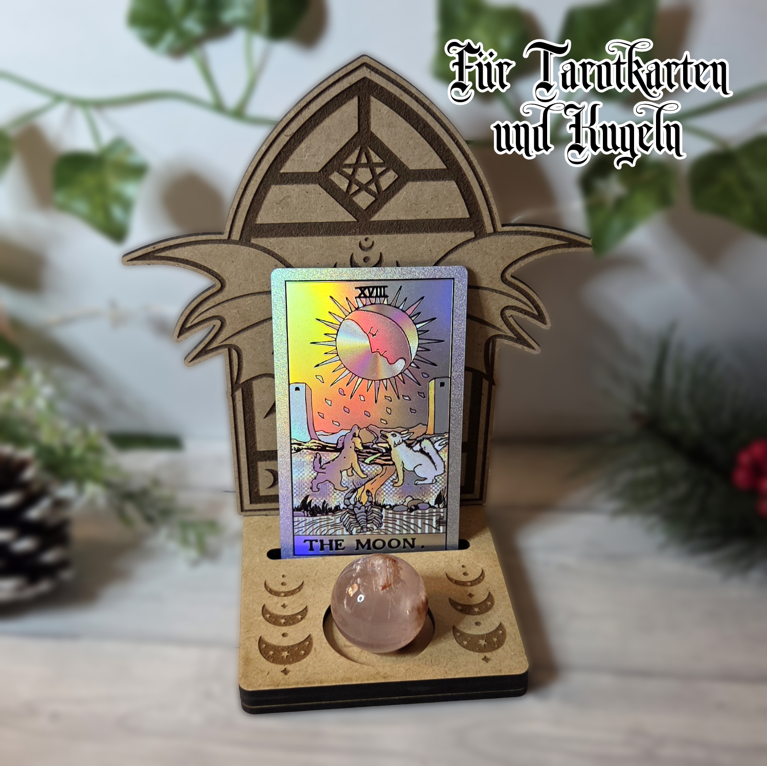 Der Karten- und Teelichthalter passt perfekt in dein witchy Inventar und die extra Aussparung für kleinere Kristallkugeln bietet zusätzliche Variation!