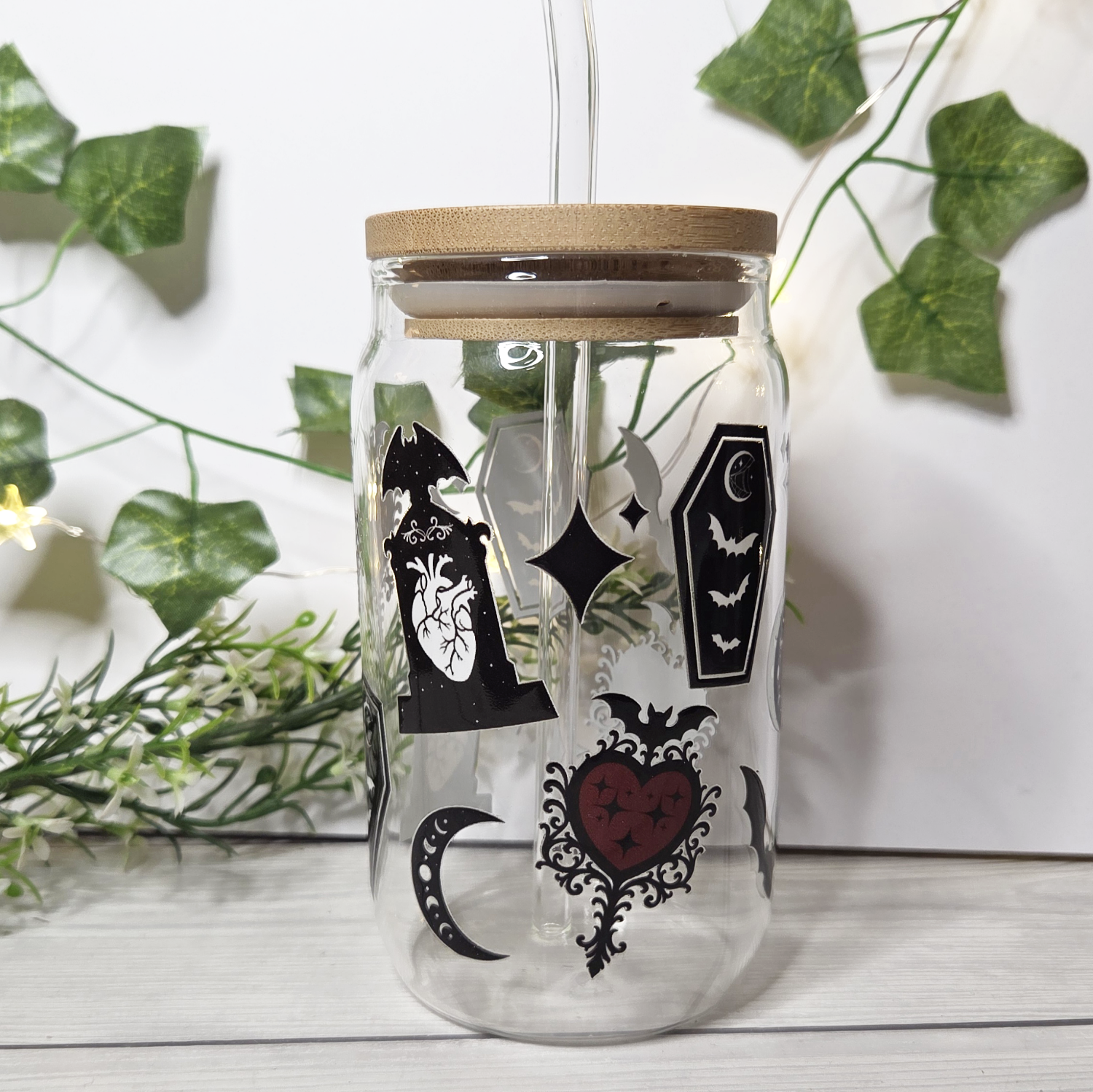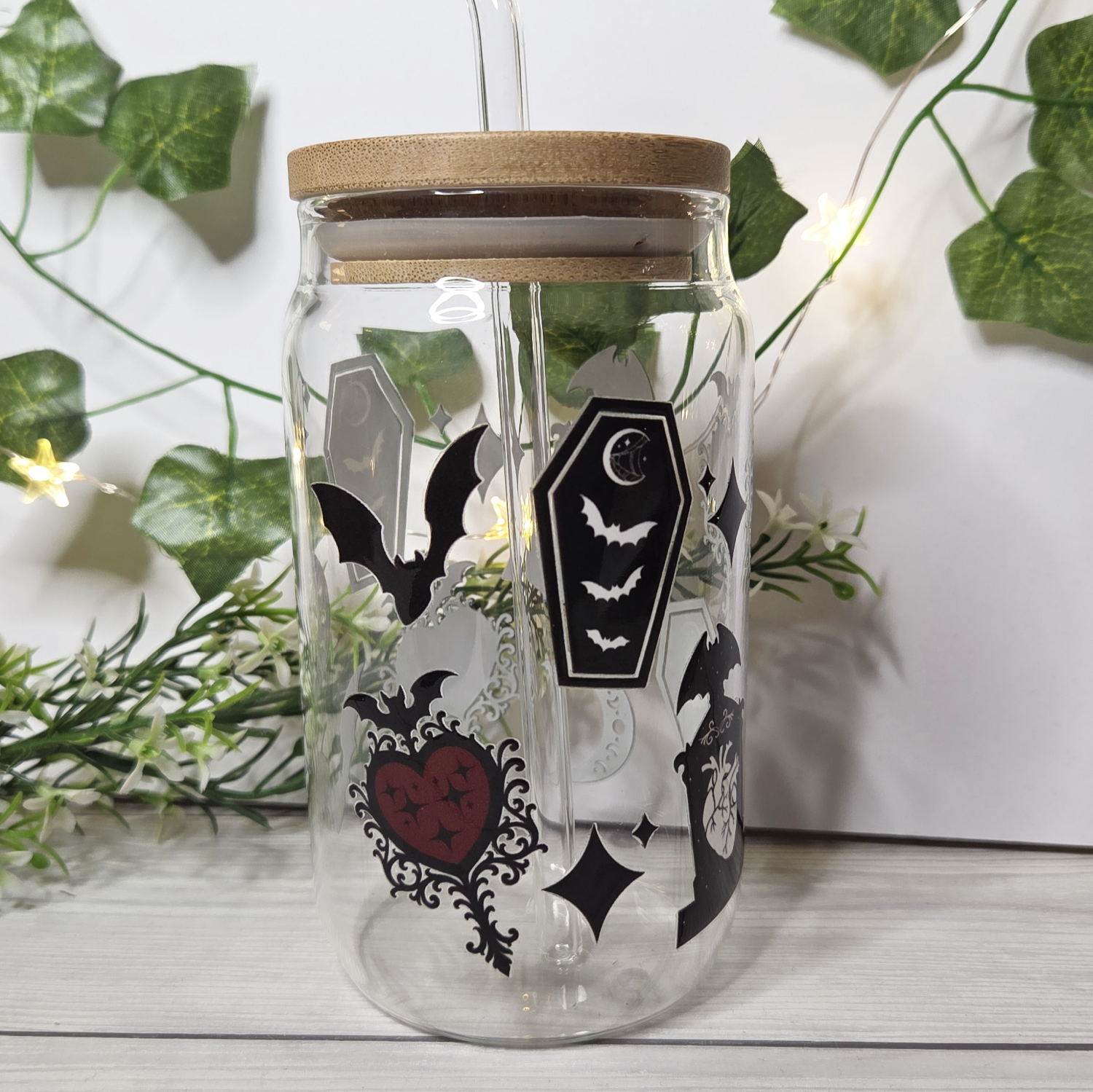 Durch den umweltfreundlichen Bambusdeckel mit Glasstrohhalm, lassen sich gerade im Sommer alle Getränke auch problemlos draußen genießen!
